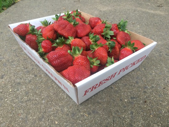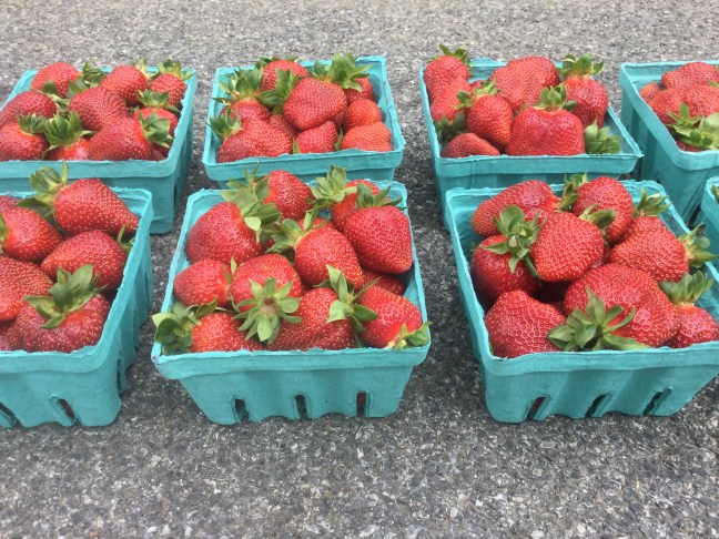 There were a few more strawberries than we thought there might be today, so PYO will be open ($17 small 4qt tray or $28 large 8qt tray.). Pre-picked quarts are $5/qt, and Jam Berries are $3/qt. Open Monday and Wednesday. 9:00am – 6:00pm. (Maybe Friday, but we’ll see.)