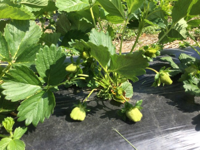 The strawberry plants look great and are full of flowers, with green berries growing. We estimate the first RED strawberries will be ready in about 1.5 weeks, or about May 19-20ish (for pre-picked berries only). The Pick-your-own fields usually open about a week after the first RED berries begin. At this point the start date is an educated guess as weather is always the prime factor in determining the speed of berries ripening. Stay tuned!